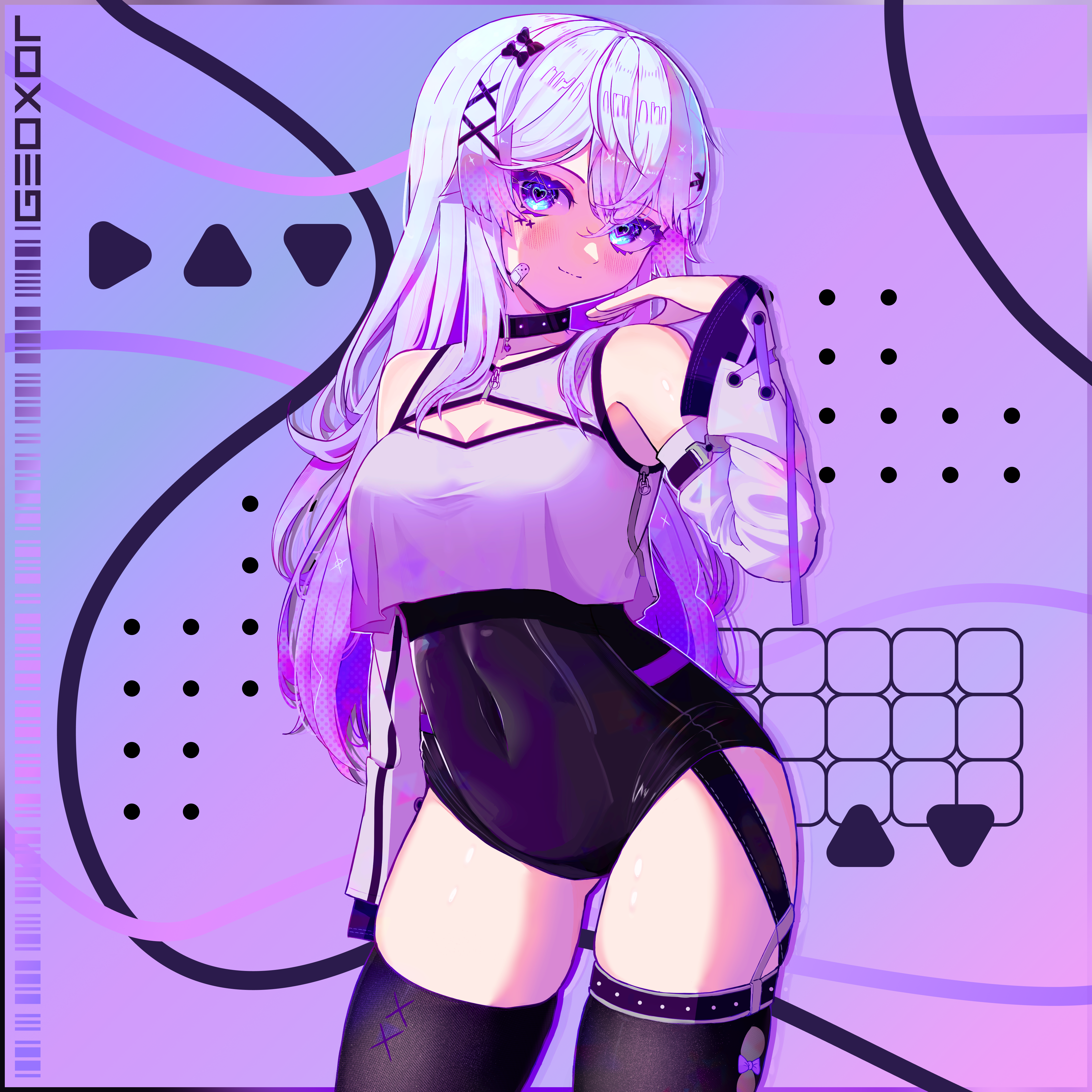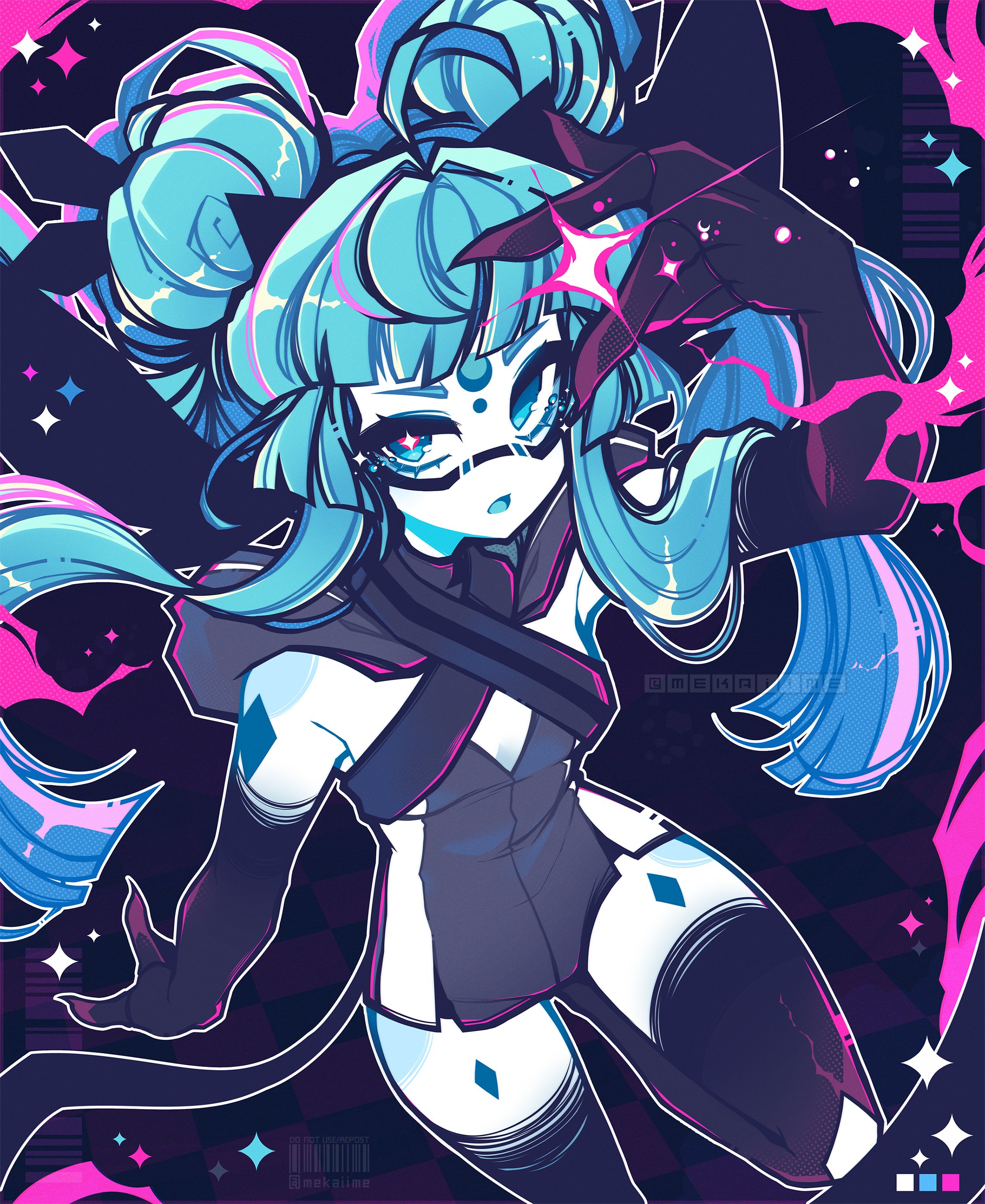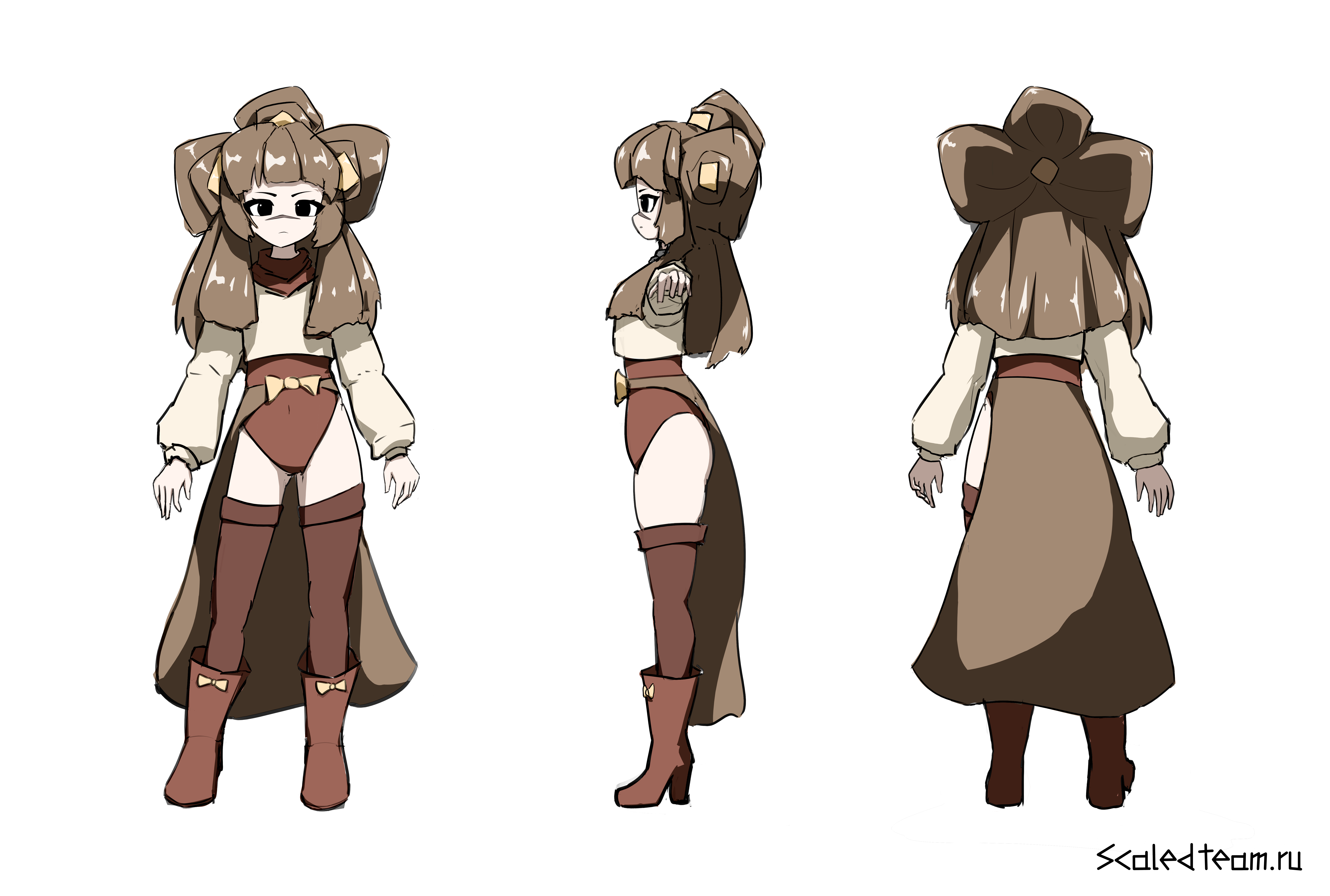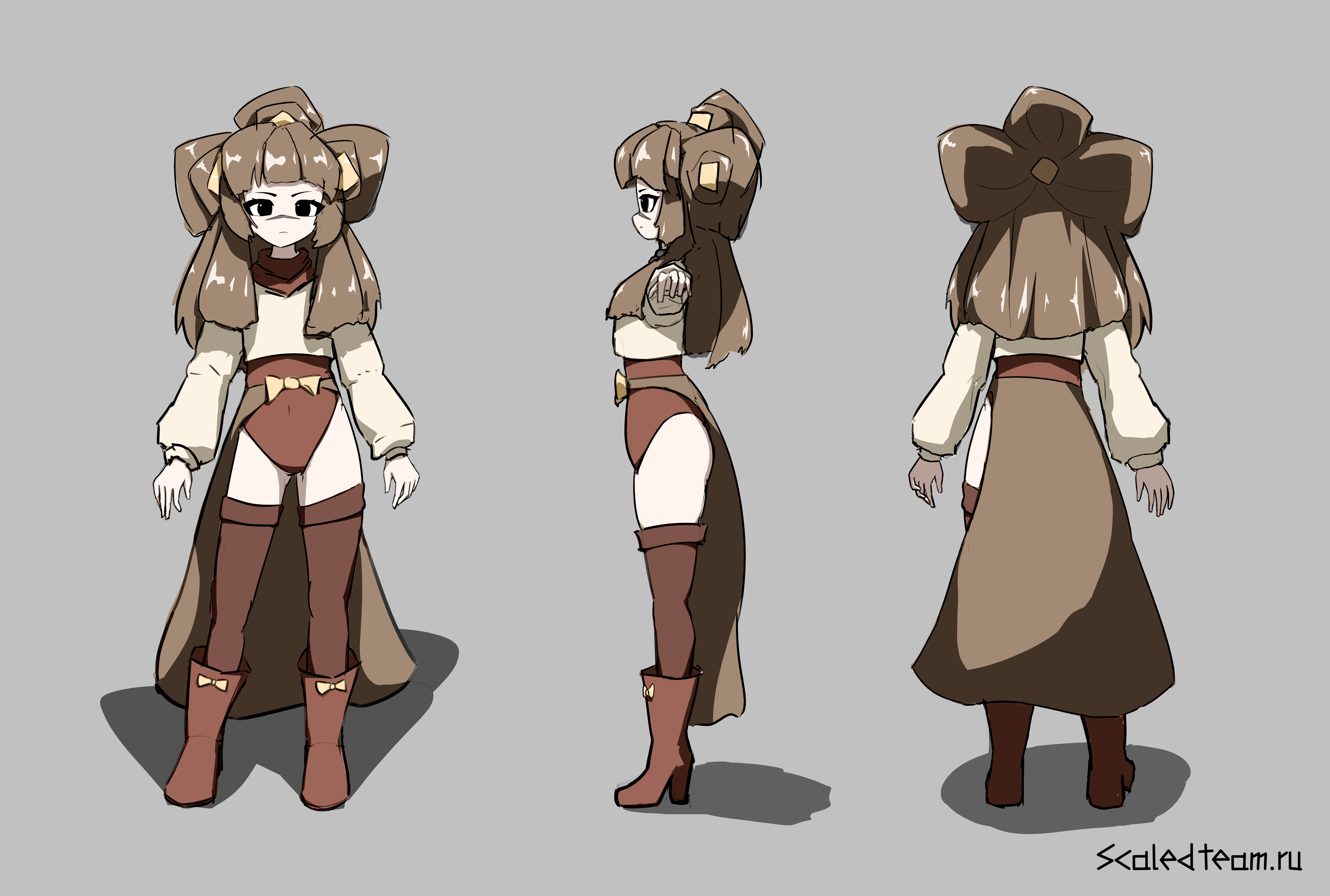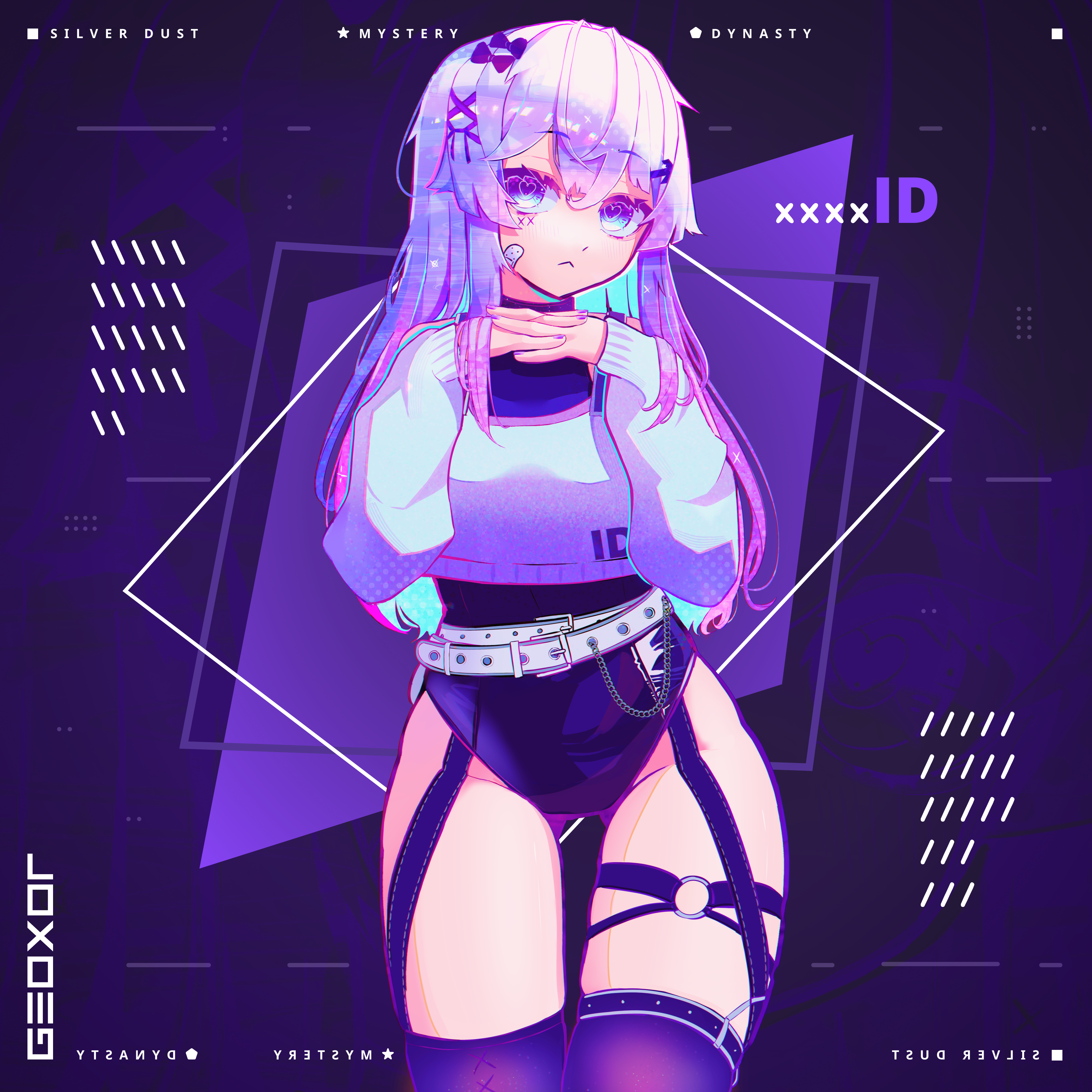 Сейчас очень популярен дизайн с использованием укороченных версий вещей, например укороченный худи, надетый поверх купальника, с рукавами, просто надетыми на руки, с штанами, от которых остались только нижняя и верхняя части, и так далее. В моём дизайне я вдохновлялся работами Mekaiime (например: 1, 2), а также новыми дизайнами Geoxor'а (например: 1, 2, 3), кто раньше использовал дизайны Mekaiime для обложек альбома. Дизайн использует цветовую палитру канонического дизайна, а также использует большие пучки волос, напоминающие 2 больших хвоста из дизайна персонажа сайта, а также немного напоминающий уши фурри из анимейшн мемов, по расположению и объёму.